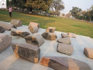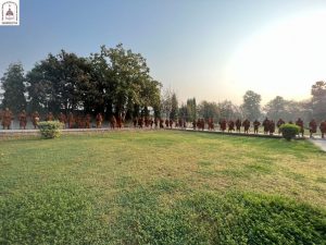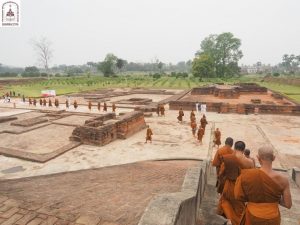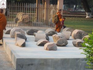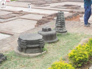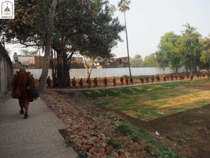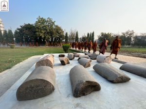 We continued down one road to the next, eventually arriving at Kumhrar Park in Patna, which is the location of the ancient city of Pataliputra where the third Buddhist Council was held after the Buddha entered Parinibbāna. Today, the park is open to the public and features Asokan stone pillars, broken into pieces and displayed under a protective canopy.