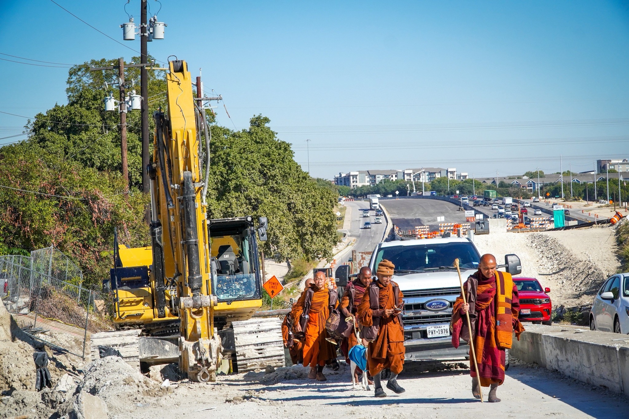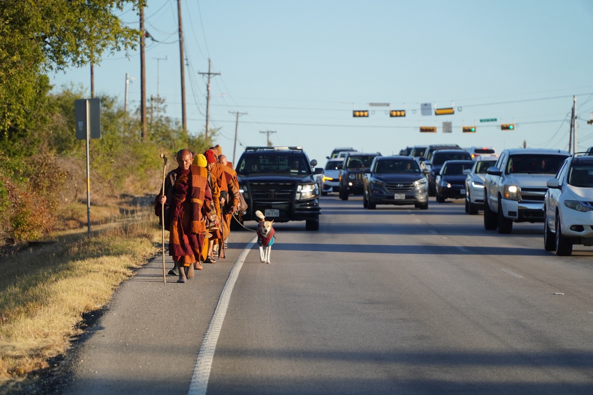 From Summit Drive to Ferguson Lane, the Sangha journeyed twelve miles through the streets of Austin, their presence a gentle contrast to the hum of modern life. Along the way, practitioners and supporters continued to offer water, food, and words of encouragement—small yet profound acts of compassion that wove humanity closer together.
