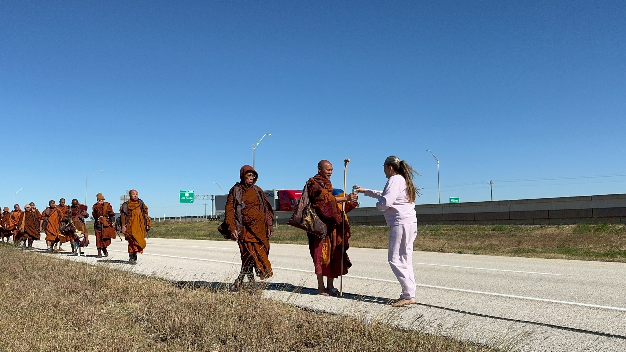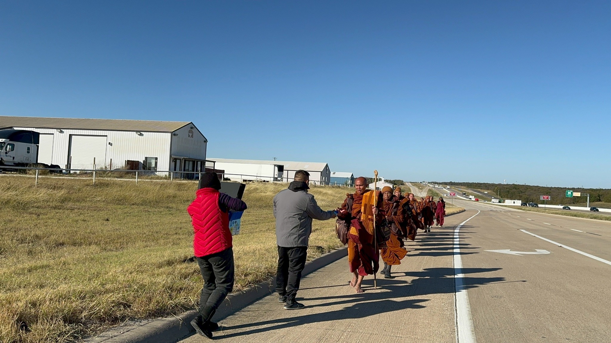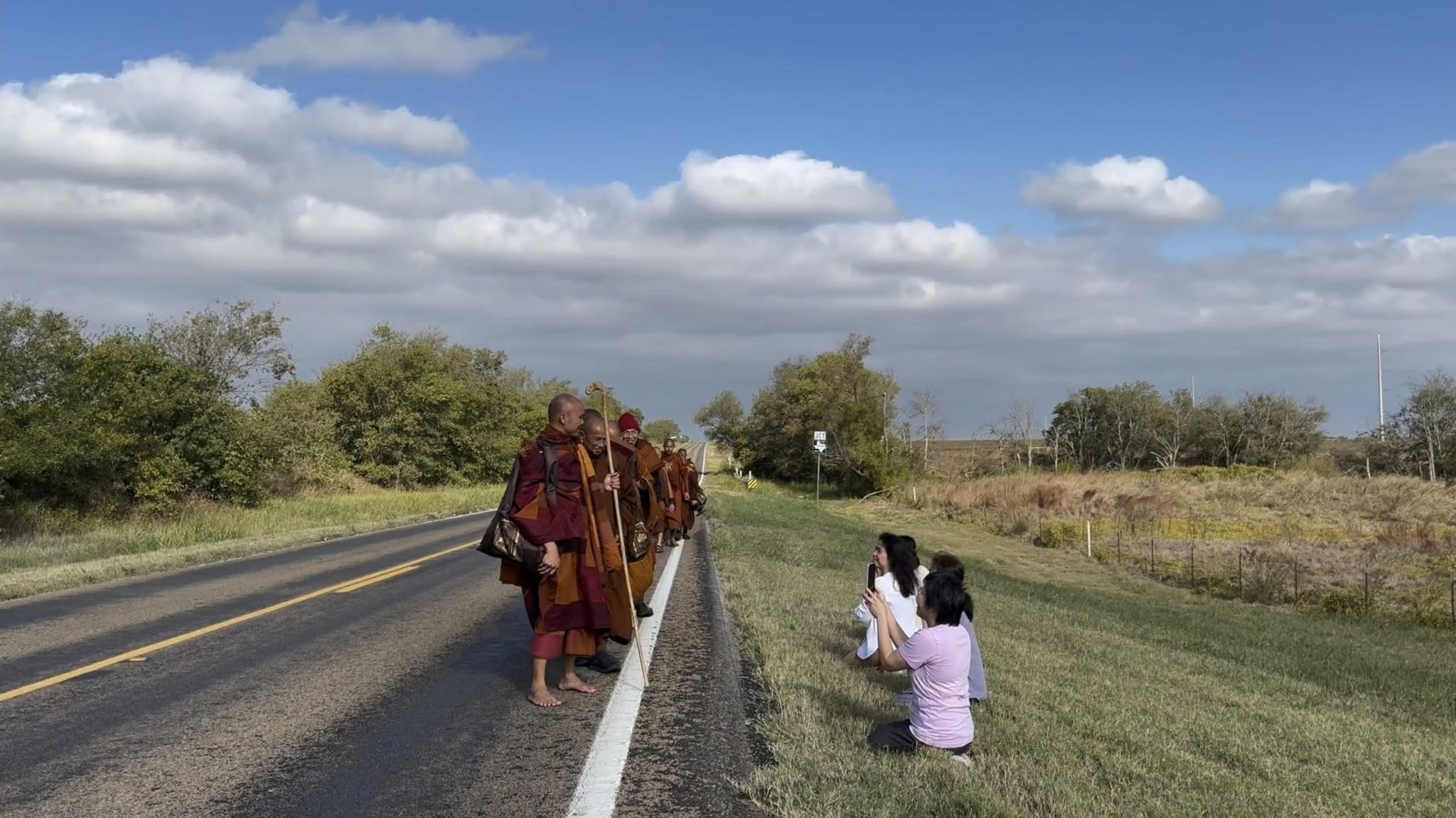After a brief midday pause for a simple meal, the practitioners continued another twelve miles, embodying the middle way between effort and ease. By dusk, they reached West, Texas, where they concluded the day’s journey in reflection and gratitude. Their path that day stretched far, but the true distance traveled was inward — toward deeper compassion and understanding.